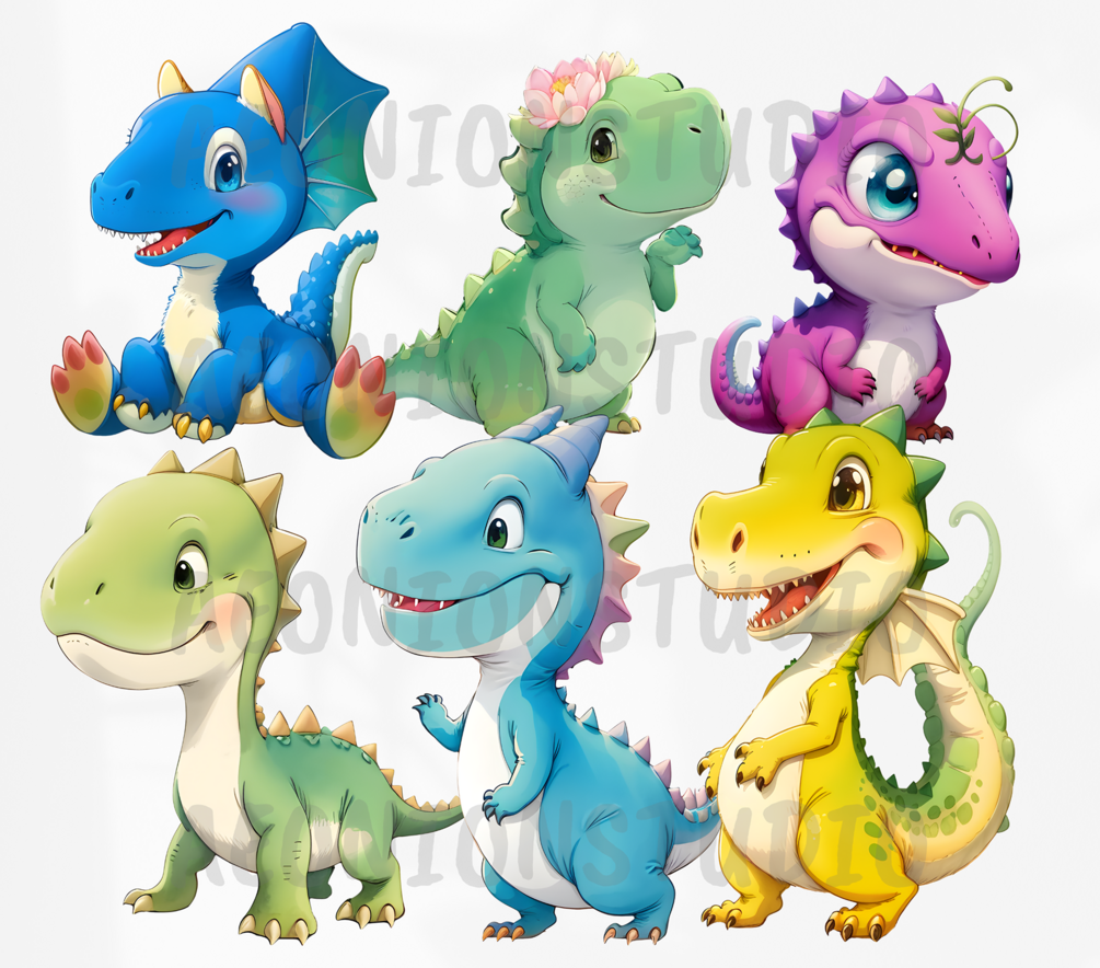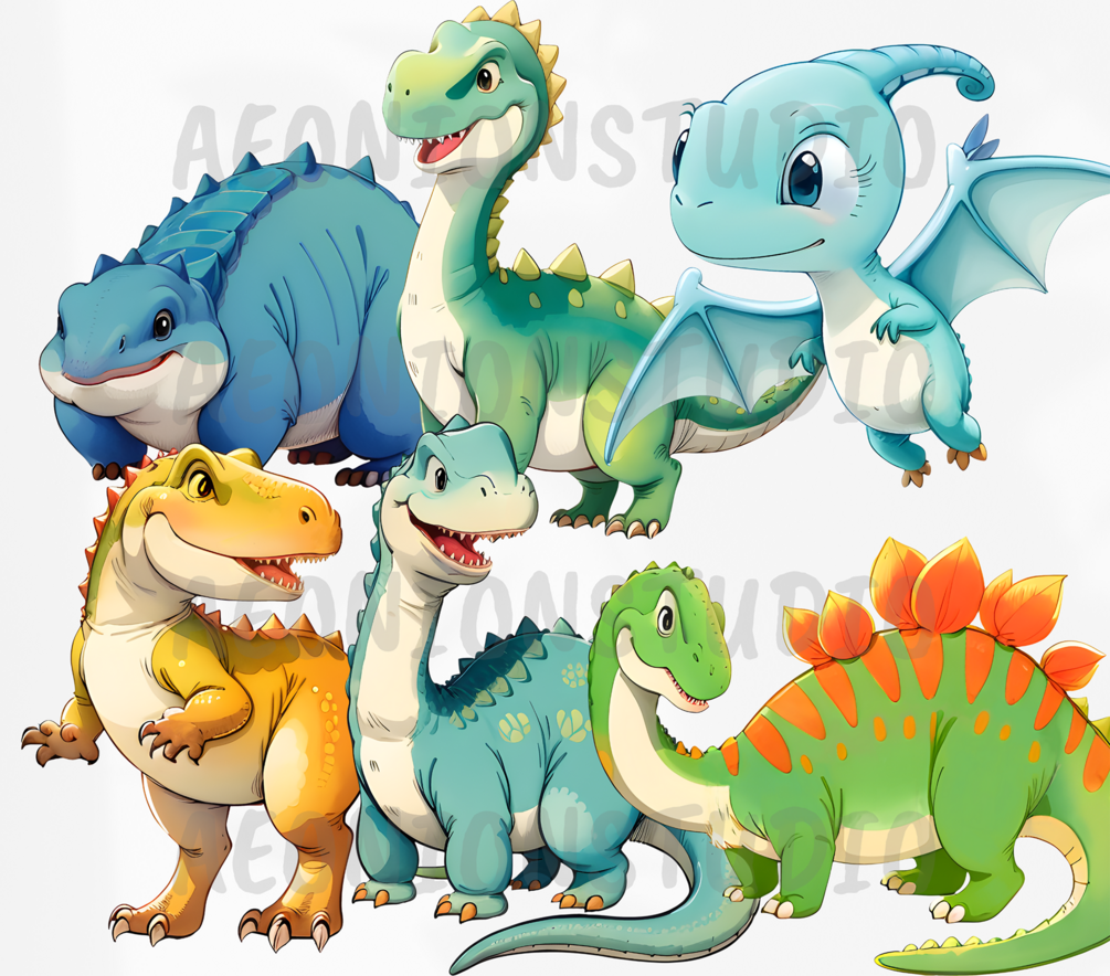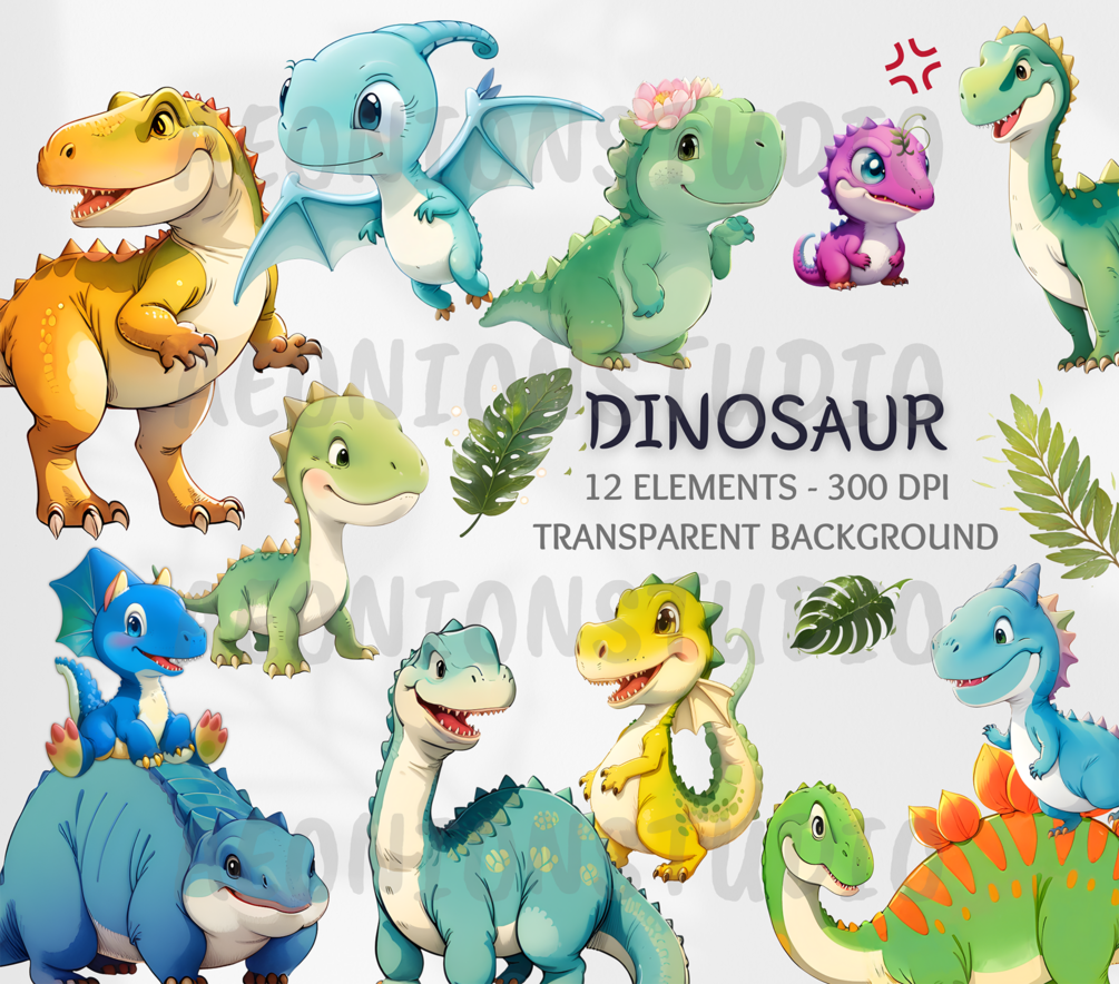 These adorable dinosaur clipart images are perfect for any project! With a transparent background, they can be easily added to any design, whether it's a birthday card, a party invitation, or a school project.